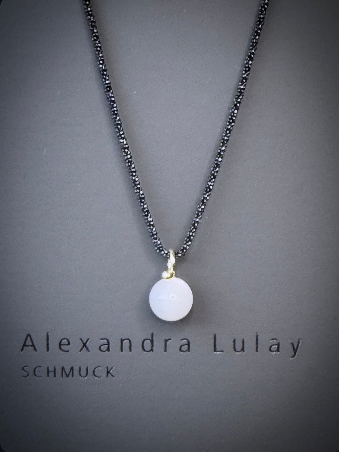Halsschmuck mit hellgrauer Mondstein-Kugel